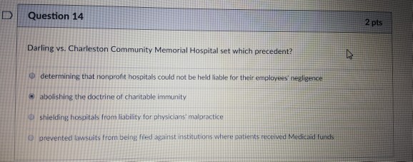 Solved D Question 14 2 Pts Darling Vs Charleston Community Chegg Com
