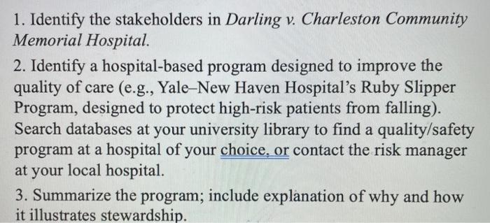 Solved 1 Identify The Stakeholders In Darling V Charleston Chegg Com